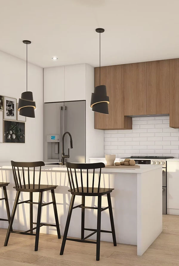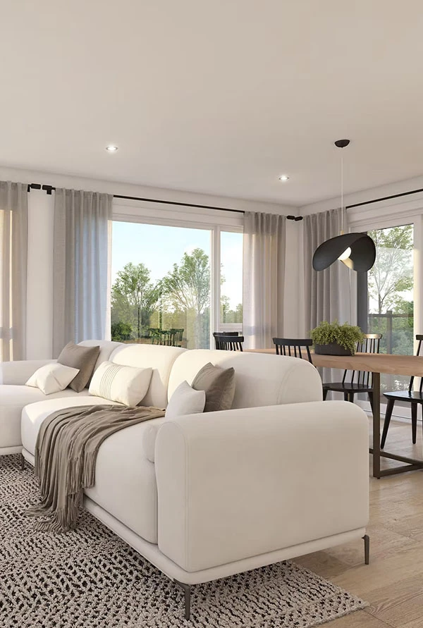 Unités 3 ½, 4 ½ et 5 ½ spacieuses et lumineuses, construction neuve, design contemporain, grandes fenêtres et insonorisation supérieure pour un confort optimal au quotidien.